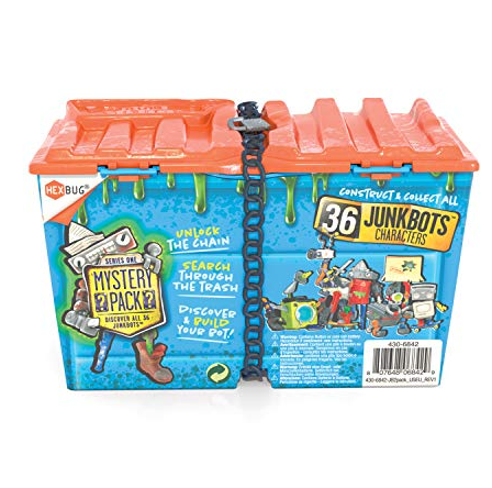 $18.95You never know what parts you'll get to build your own static robotic model, A great gift for birthdays and holidays - Get kids a break from video games and begin the latest creative construction experience from old and new parts! Laugh out loud (LOL) and surprise your friends when you open each new HEXBUG JUNKBOTS series trash can or dumpster, For kids, these playsets can be combined for play making your own characters and adventures, The fun is only limited by imagination when crafting these mini models, dolls and heroes, These alien powered toys for kids bring out the creative side of girls and boys in a brand new, astonishing unboxing experience, Inside this special Dumpster pack are over 24 pieces that can be used to build four separate JUNKBOT characters, or mix and match pieces to customize totally new builds using the universal socket system! Contains light-up energy core, The more you collect, the more you can create! 36 collectible JUNKBOTS are waiting to be unearthed from their unique trash cans, In this ultimate unboxing experience, dig through junk to reveal hidden treasures and clues to build your own JUNKBOTS! Batteries included are 2x LR44/AG13 button cell batteries, What is HEXBUG? HEXBUG is a brand of tech toys for kids with roots in creating innovative children's toys based around insects, Now, HEXBUG has a range of entertaining kids toys and other creative products to help aspiring children cultivate a love for STEM and STEM products,